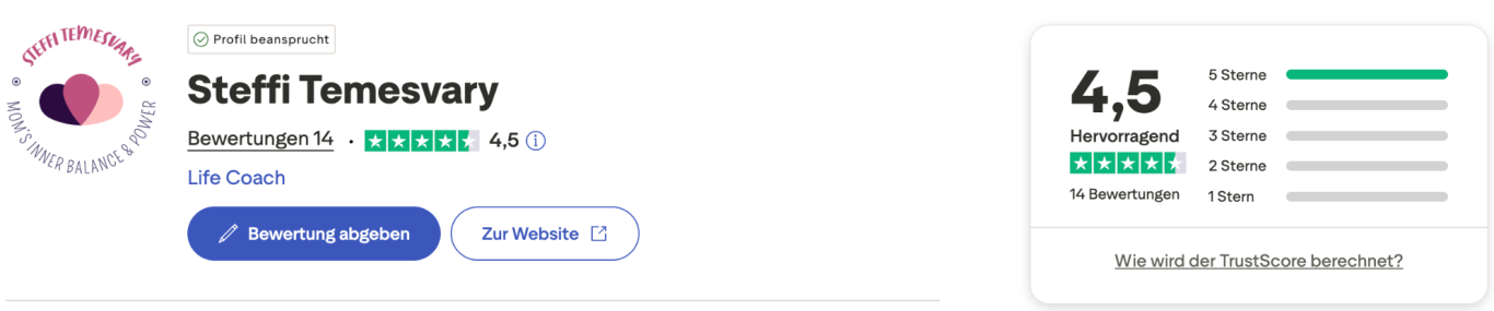 "Herzlichen Dank für das wunderbare und einfühlsame Coaching! Dein positives und herzliches Wesen hat es mir unglaublich leicht gemacht, mich fallen zu lassen und vollkommen zu vertrauen. In kürzester Zeit hast du mir eine neue Perspektive auf meine Situation eröffnet, die mir hilft, im Alltag mit meinen Kindern leichter abzuschalten. Das fühlt sich so befreiend an - danke für deine wertvolle Unterstützung!